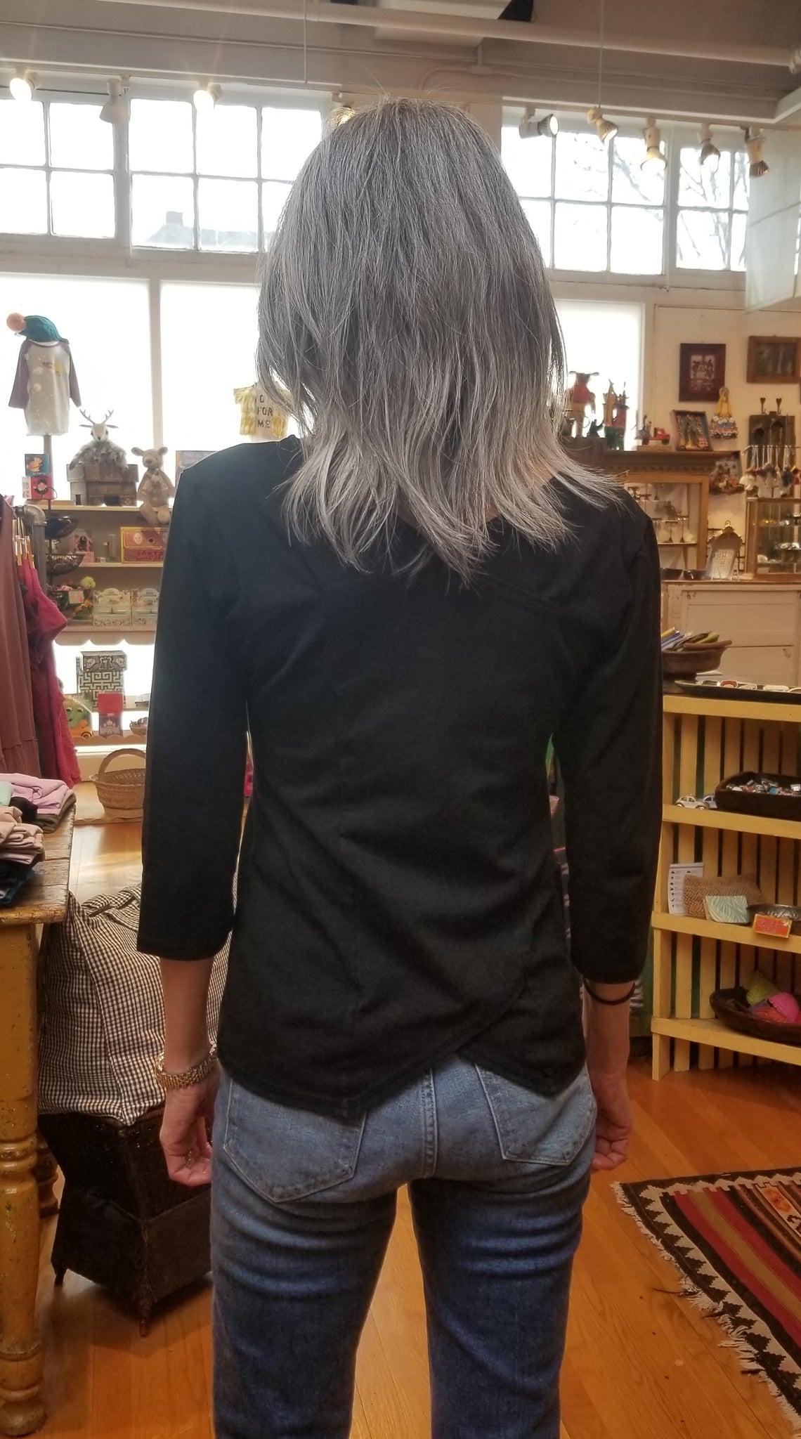 3/4 Sleeve Crossover Top in Black | Luna Luz