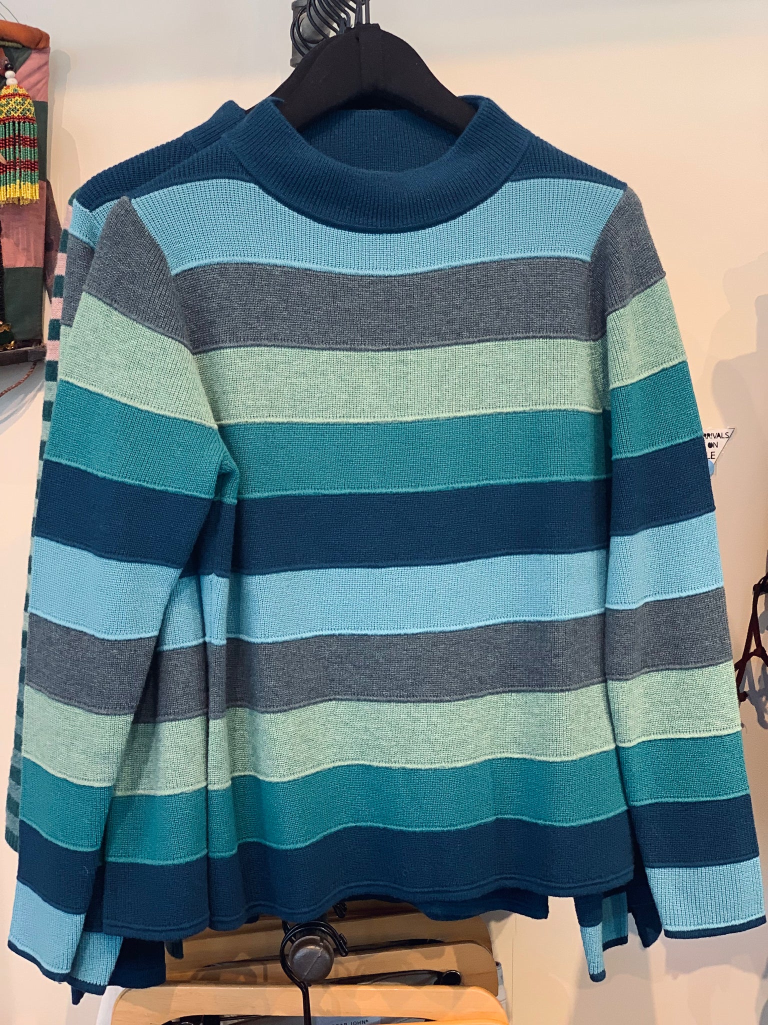 Leia-Sue Organic Cotton Stripe Jersey Top in Pine Green & Off White Stripe / Beaumont Organics