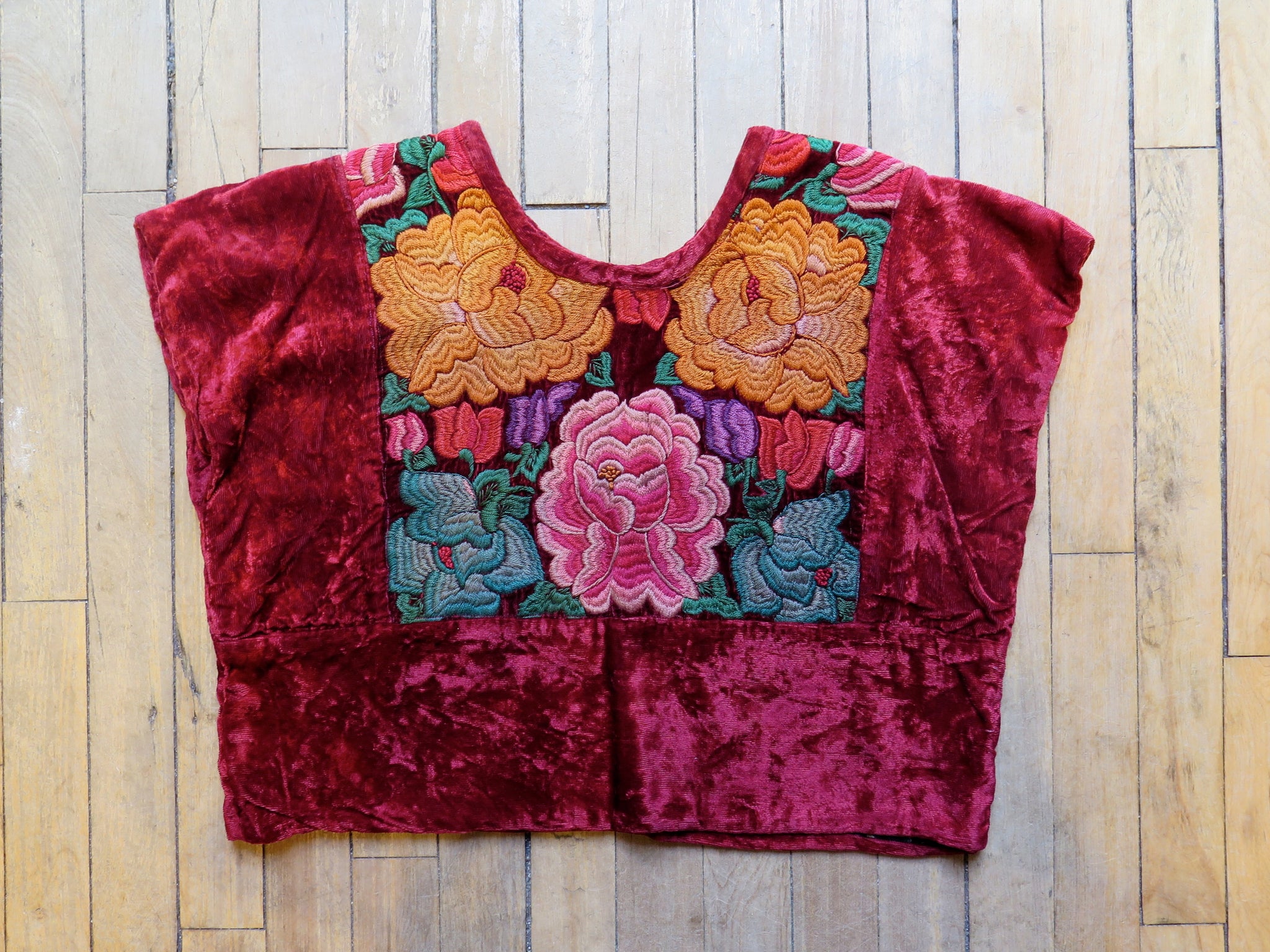 Vintage Velvet Embroidered Tehuantepec Huipil Blusa