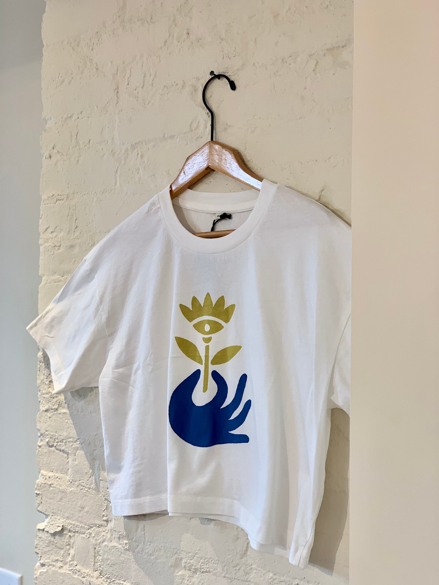 This adventurous boxy top is hand-printed. Made from 100% ORGANIC cotton, this top has a loose fit and can easily become one of your go-to favorites!