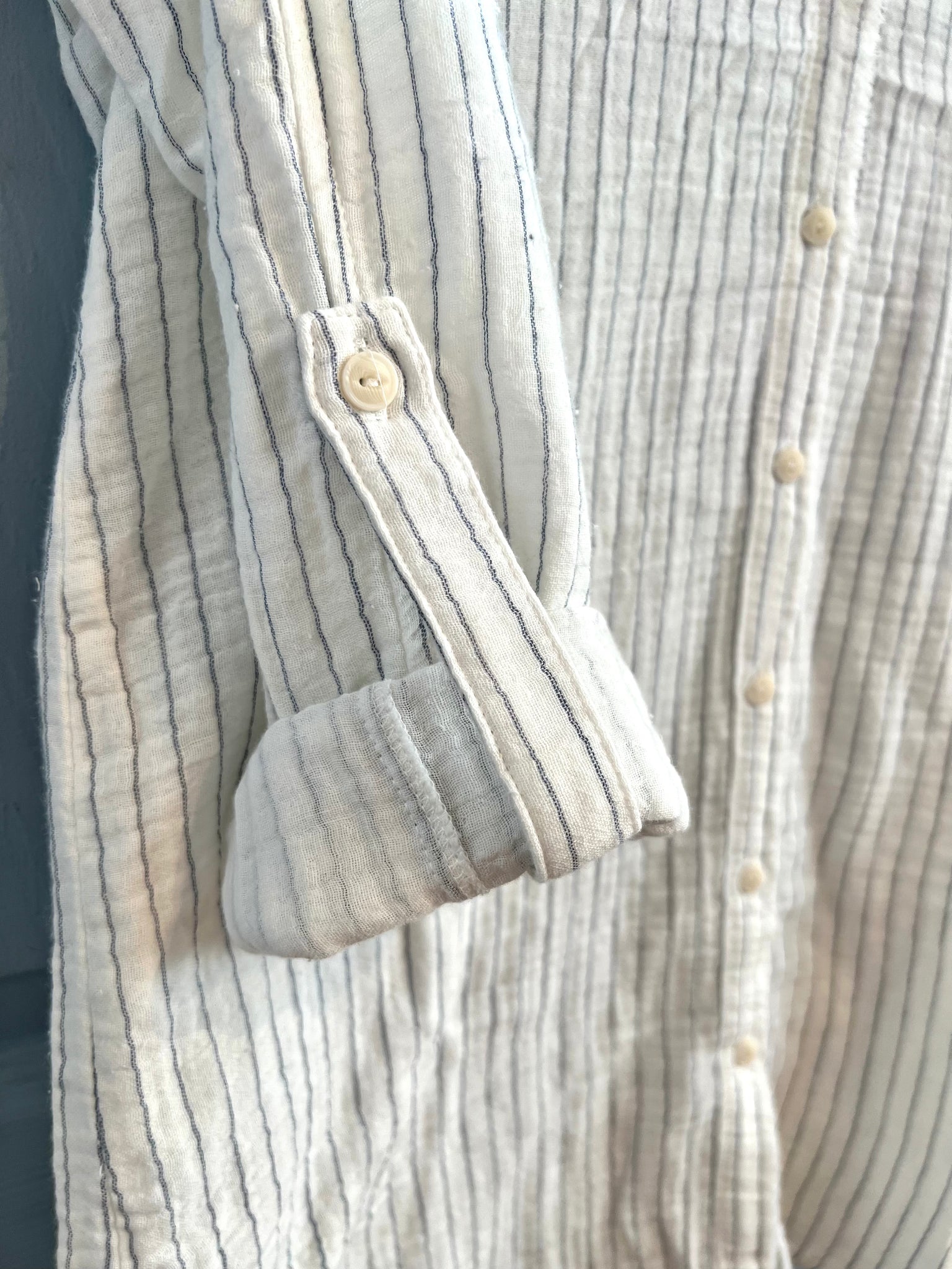 Long sleeves that can be rolled and buttoned into place for a shorter sleeve, if desired