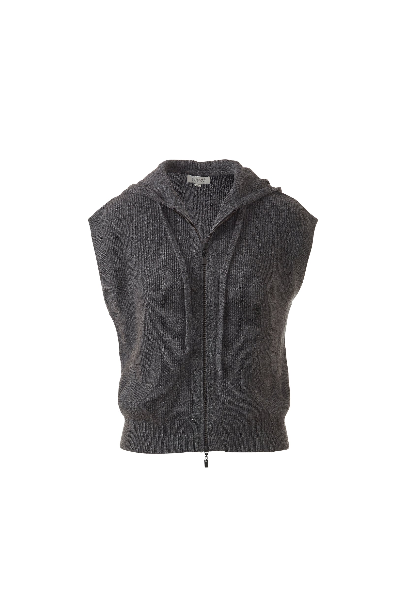 Experience the unparalleled luxury of our 100% Cashmere Sleeveless Rib Zip Hoodie, a testament to sophisticated design and sumptuous comfort. This exquisitely soft hoodie, crafted from the finest cashmere, drapes elegantly, offering a versatile silhouette that effortlessly transitions from a chic daytime layer to an elevated evening accent. Its relaxed fit ensures supreme comfort, while the inherent beauty of the material speaks to a refined aesthetic. Discover the ultimate blend of elegance and ease, a true staple for the discerning wardrobe. Shop our luxury cashmere collection for the perfect blend of style and comfort.