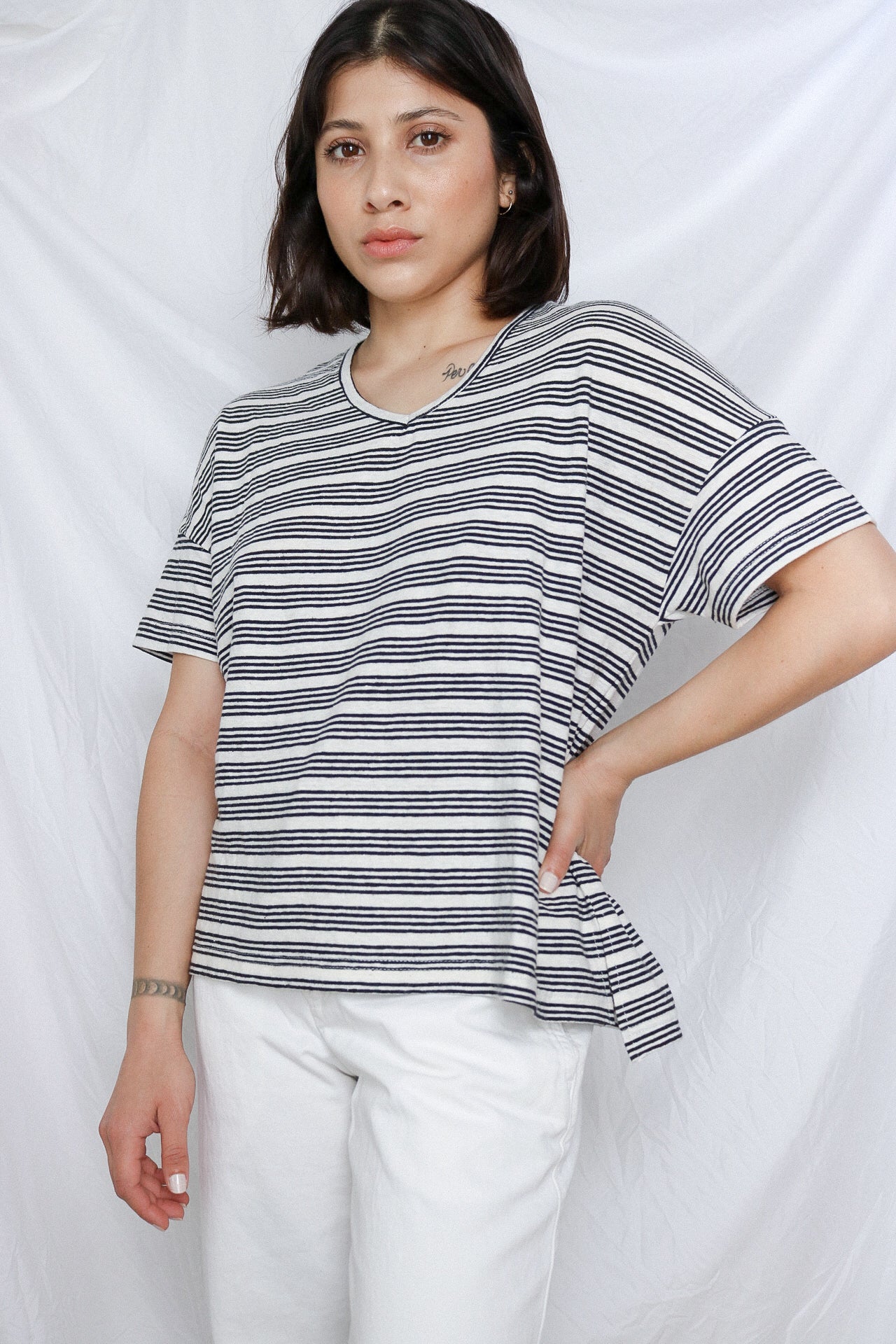 Striped V-Neck Tee | Orejas