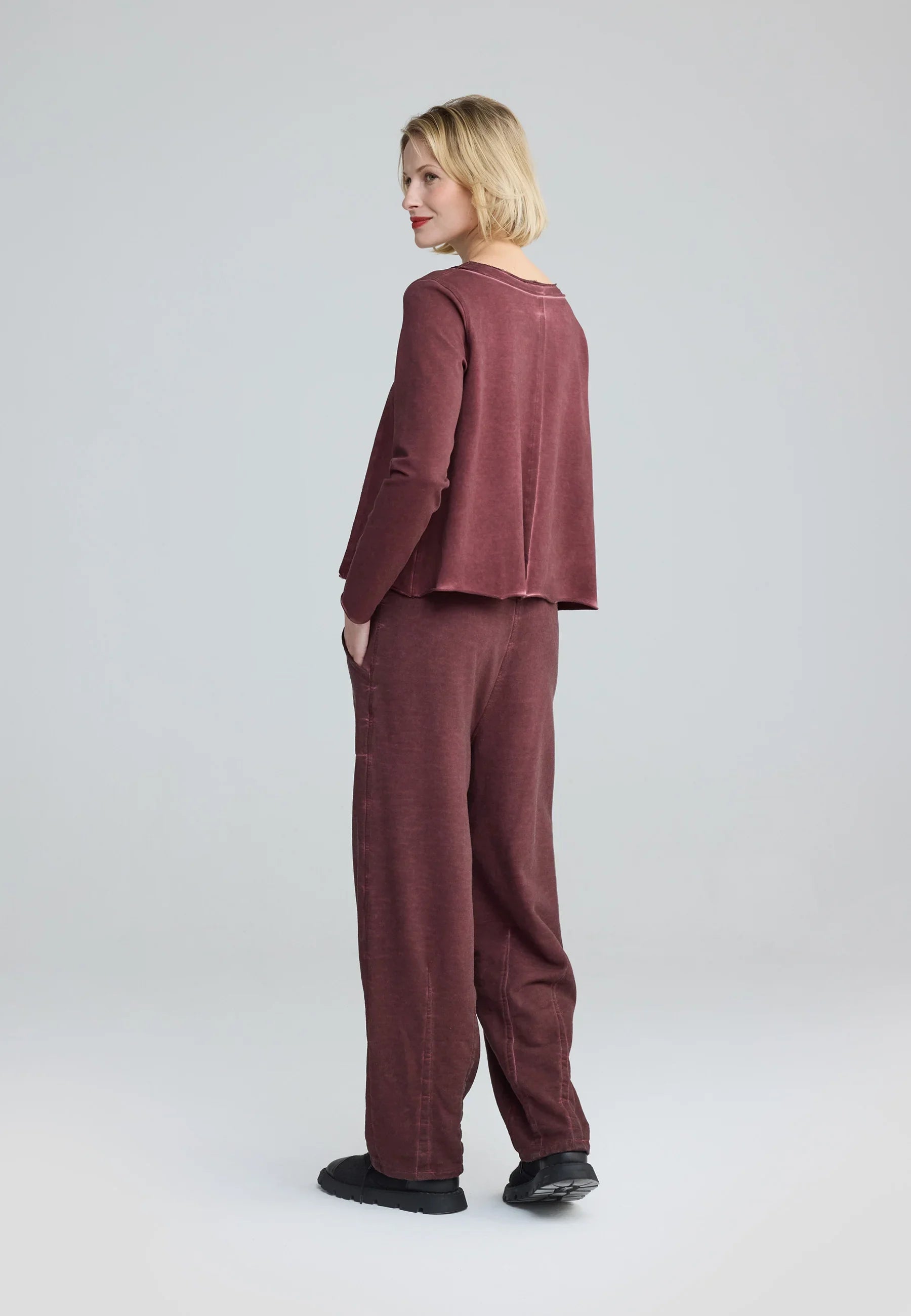 ✓ Garment dyed, contemporary, cotton jersey blouse design featuring a unique asymmetrical neckline for a sculptural effect
