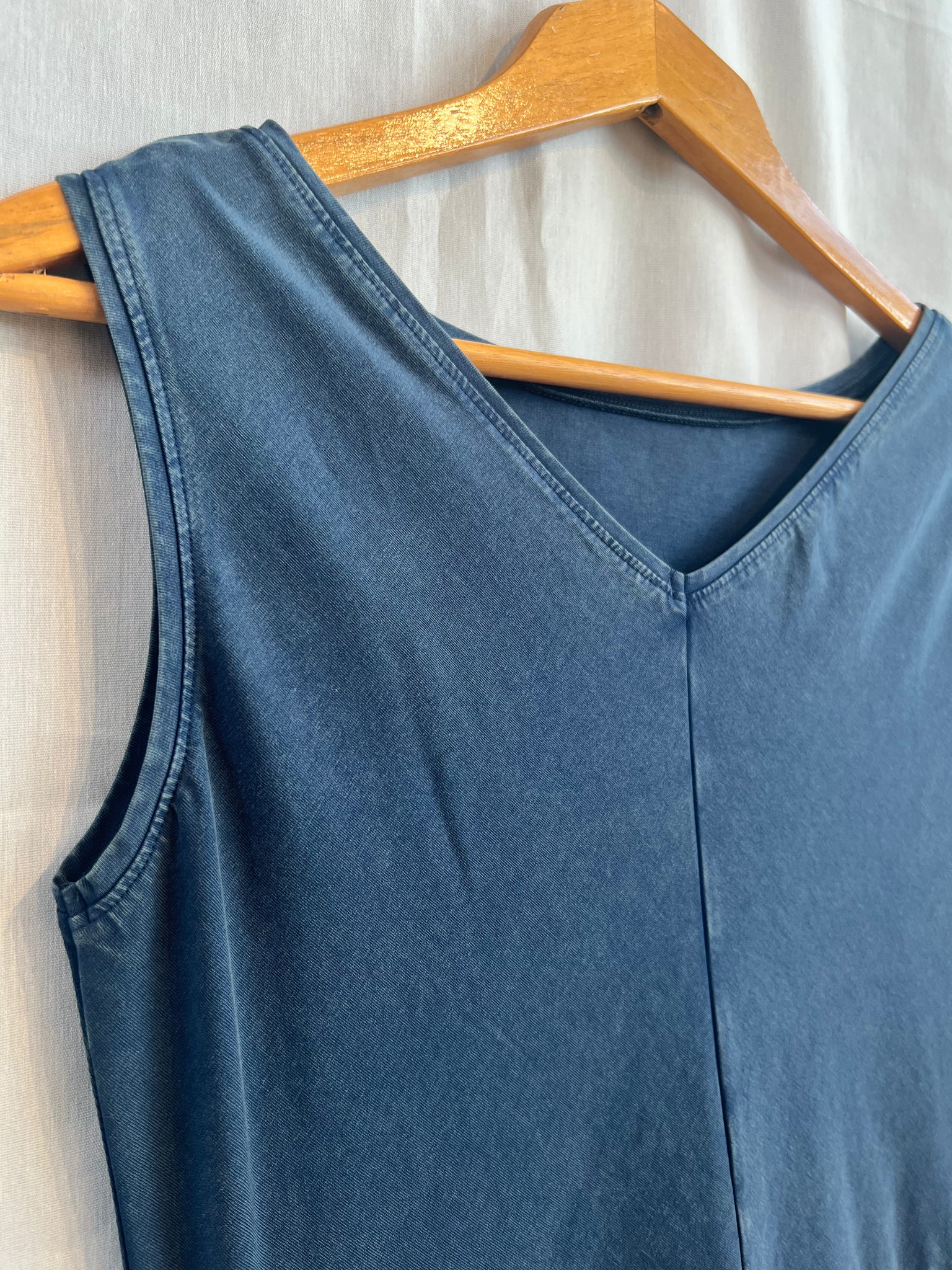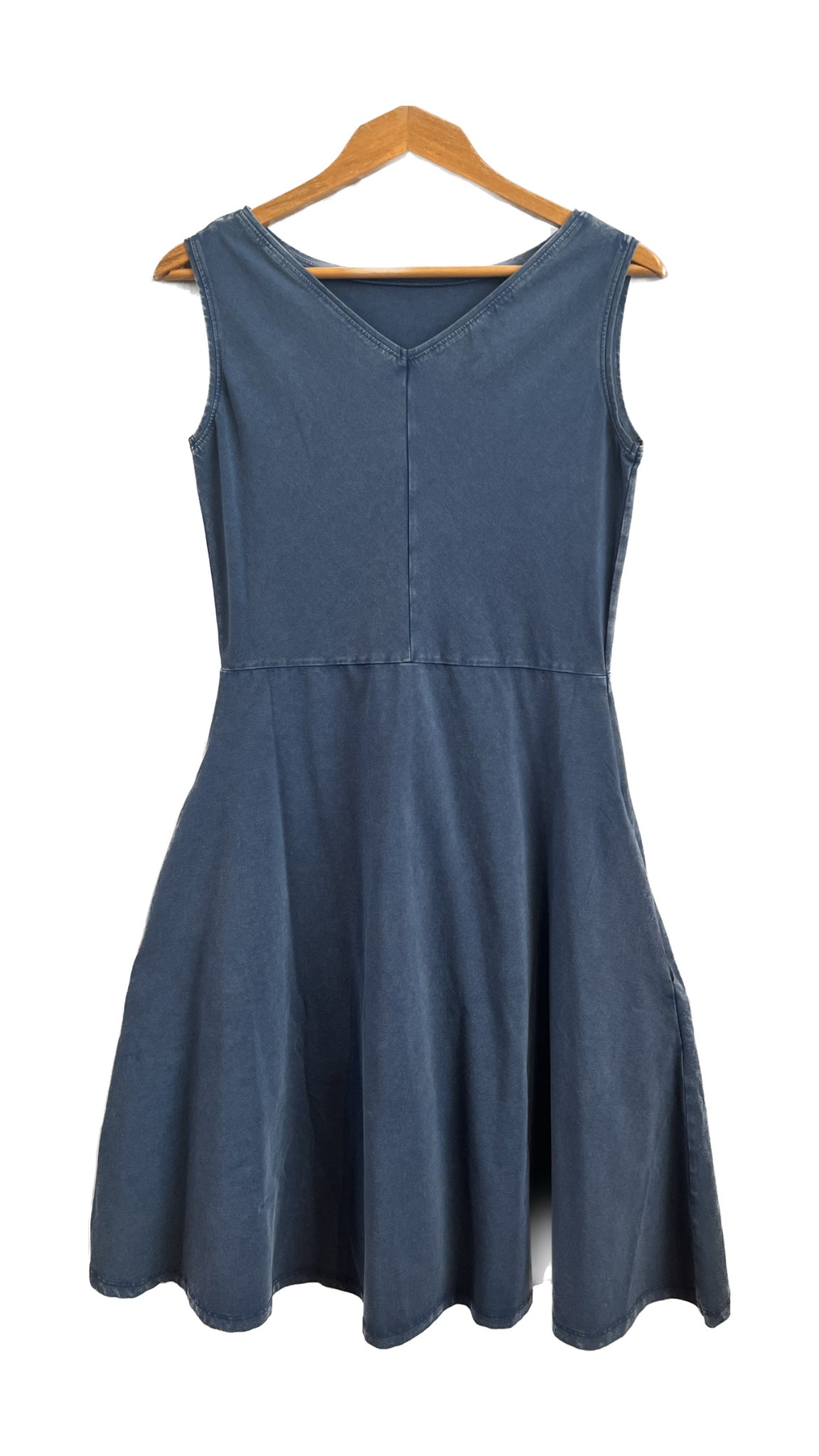This dress is reversible! It can be worn as a v-neck or a high neck dress by simply turning the dress around!