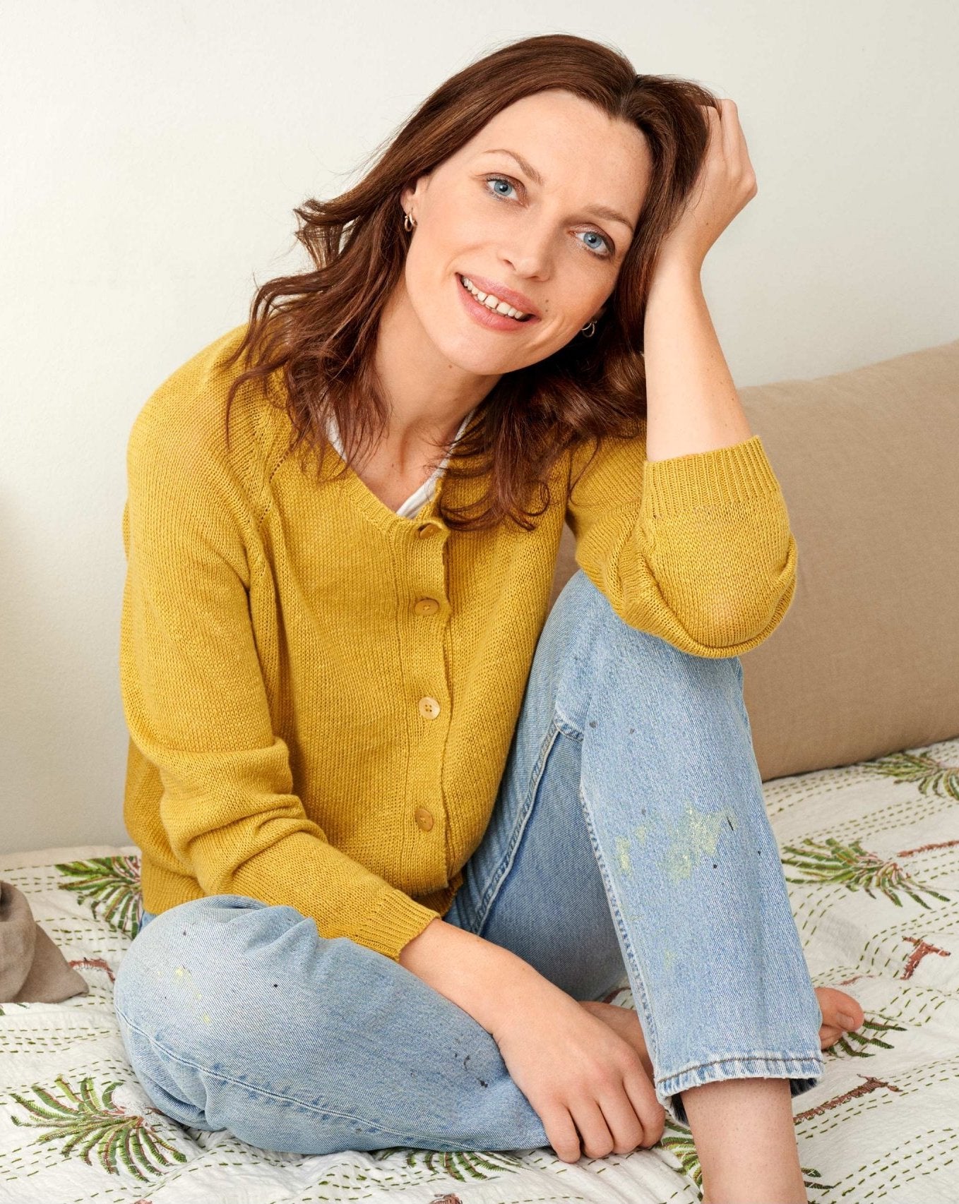 Relaxed fit raglan sleeve cardigan from Mansted. Made from light rustic linen that feels cool to the touch with buttons made of real shell.